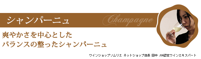 クリアで輝きのあるライトゴールドの色調に、細かい泡が切れ目なく立ち上る優雅な様子・・これぞまさしくシャンパーニュ!と期待が膨らみます。香りにはまずライム、ハーブや花束、リンゴ、蜜、マカロンのような甘い香りも感じます。すっきりとした爽やかさがあってピュアな味わい。