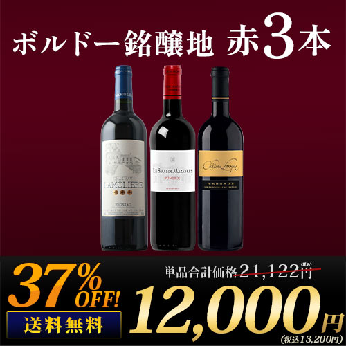 ボルドー銘醸地3本飲み比べセット 送料無料 赤ワインセット「6/4更新」