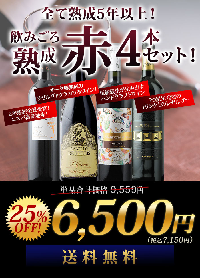 全て熟成5年以上!飲みごろ熟成赤ワイン4本