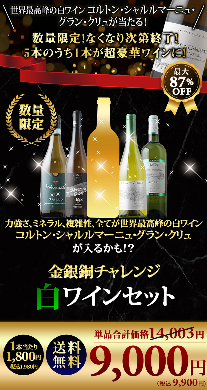 SALE限定セット!金銀銅チャレンジ白ワインセット 送料無料 白ワインセット