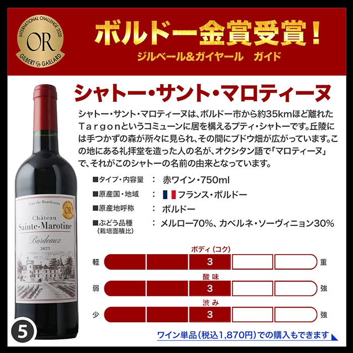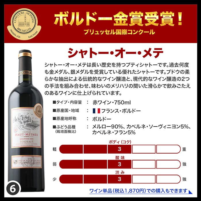 ワインショップソムリエ厳選 全部金賞ボルドーワイン6本セット
