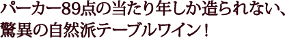まろやかな果実味から、広がりはバランスがよく、後半にスパイシーなフレイヴァーが感じられ余韻に持続する。