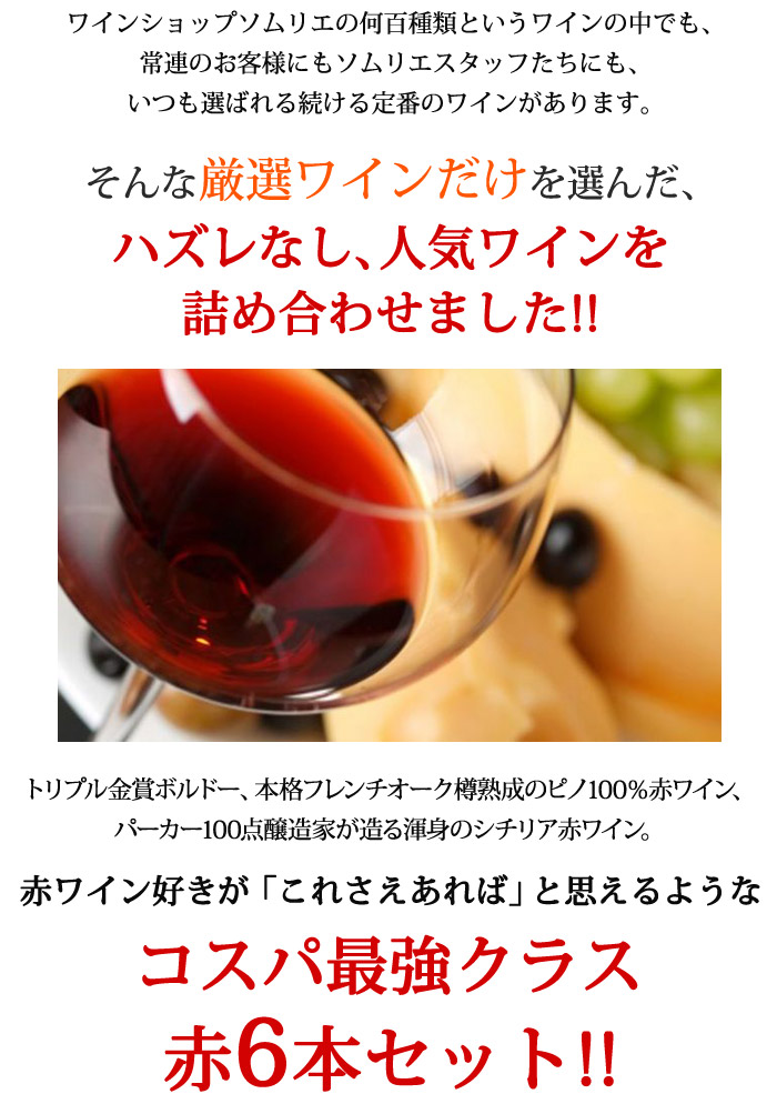【送料無料!】ソムリエ人気赤ワイン6本セット
