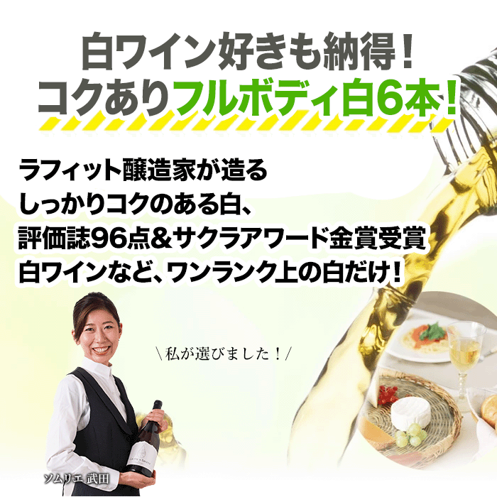 ●フルミント・ドライ / シャトー・パジョス ●フォグ・マウンテン・シャルドネ / ジャン・クロード・ボワセ・ワインズ USA ●マリポーザ・アレグレ・グラン・リゼルヴァ・シャルドネ / ヴィニャ・マーティ ●ミオパッソ・フィアーノ / ワイン・ピープル ●クラシック・ブラン / シャトー・リヴィエール・ル・オー ●ヴィオニエ / セリエ・デ・シャルトリュ |