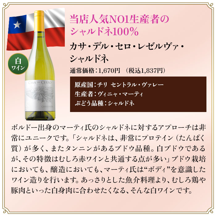 | タイプ | 赤ワイン、白ワイン、スパークリングワイン |