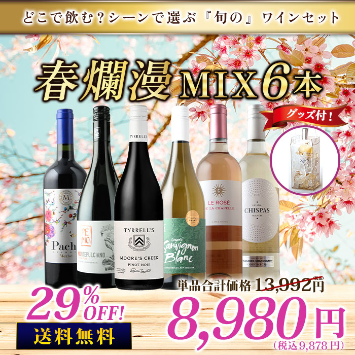 桜の木の下で。便利なスクリューキャップ!春爛漫MIX6本セット【グッズ付】赤3本&白2本&ロゼ1本 送料無料 ワインセット