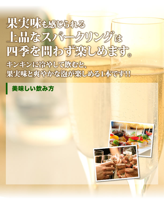 果実味も感じられる上品なスパークリングは四季を問わず楽しめます