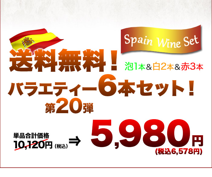 王道のスペインワインミックス6本セット 第25弾 泡1本&白2本&赤3本 ワインセット「11/20更新」
