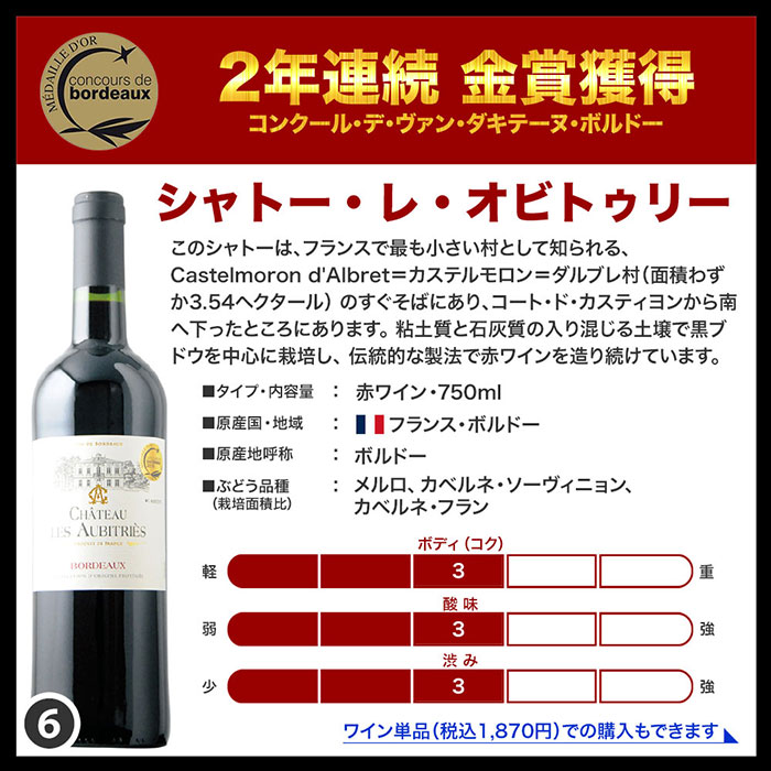 16周年記念!金賞ボルドーと元五大シャトー醸造家の赤ワイン12本セット