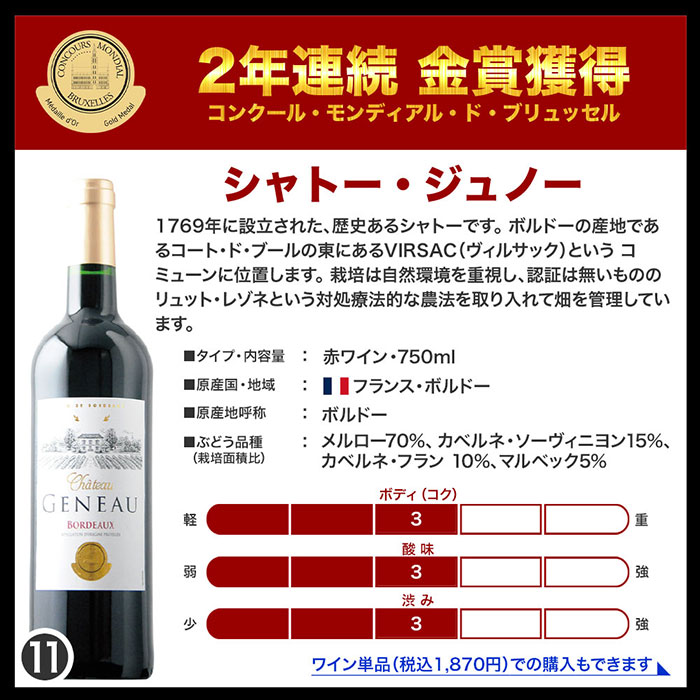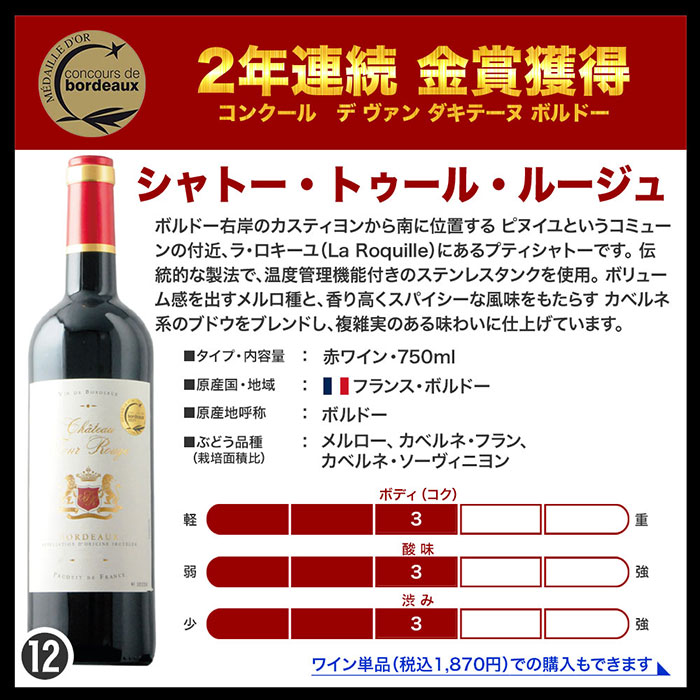 16周年記念!金賞ボルドーと元五大シャトー醸造家の赤ワイン12本セット「11/14更新」 送料無料