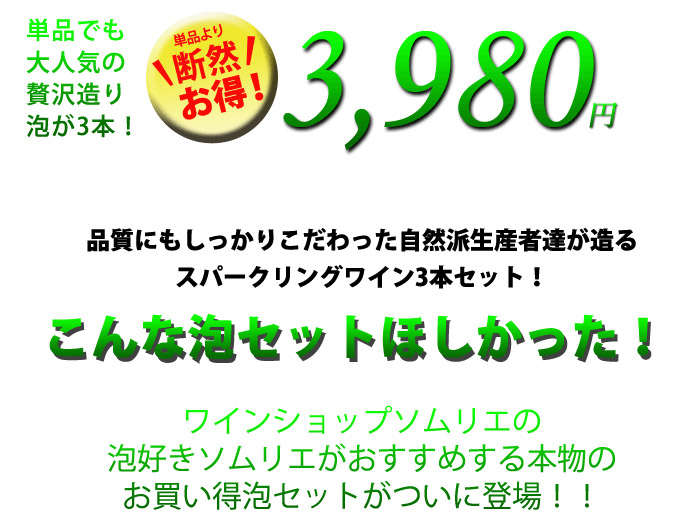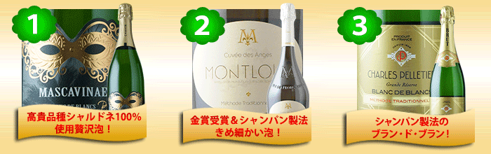 あると便利なスパークリングワインが3本セットになって通常よりさらにお買い得価格に!