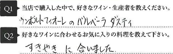 こちらではお寄せ頂いたお客様のリアルなお声や特にお気に入りのワインをご紹介いたします。