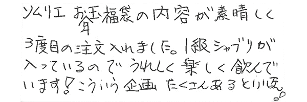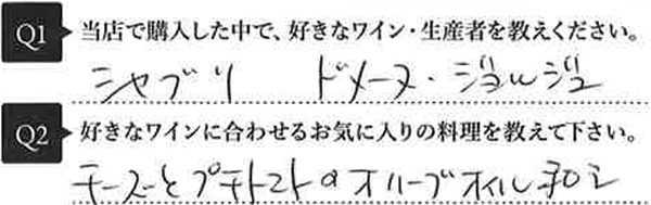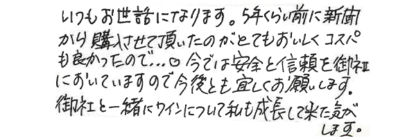 こちらではお寄せ頂いたお客様のリアルなお声や特にお気に入りのワインをご紹介いたします。