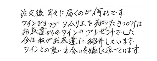 温かいお言葉や時には厳しいご意見も、全国のワイン愛好家のお客様から毎日たくさんのお声を頂いております。