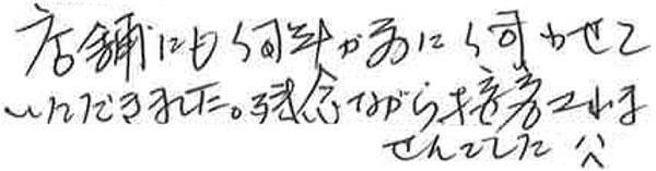 そして、ツヨポン様におかれましては、接客させていただけなかったとのこと、誠に申し訳ありません。タイミングが悪かっただけなのかもしれませんが、それでも、お客様が残念なお気持ちになられているのが私共といたしましても非常に残念です。