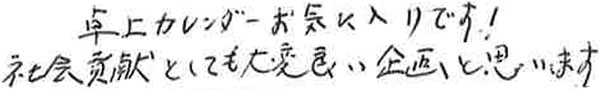 卓上ミニカレンダー、お気に召していただけているようで何よりです!しかも、社会貢献としての側面にも触れていただきまして、誠にありがとうございます!