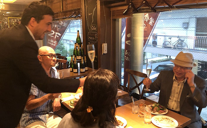 ▲各テーブルを回ってお客様とのトークを楽しむ氏。