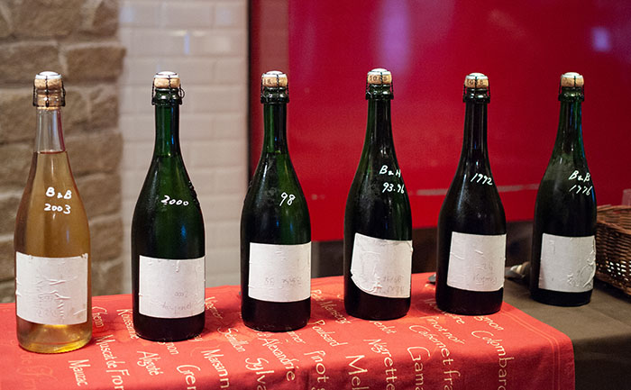 ▲特別なイベント用のダンジャン氏秘蔵のキュヴェ。写真の一番右のビンテージは1976年!