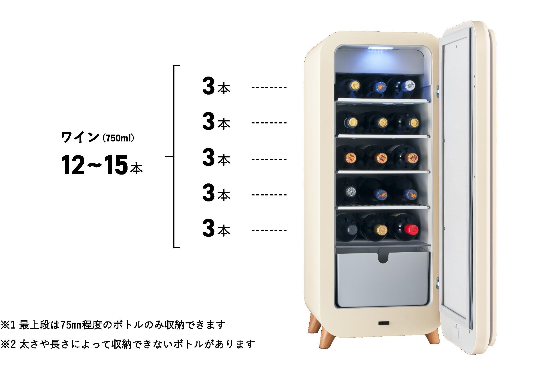 | 収納本数(ワイン) | 12本~15本程度(最上段はボルドーのみ) |
