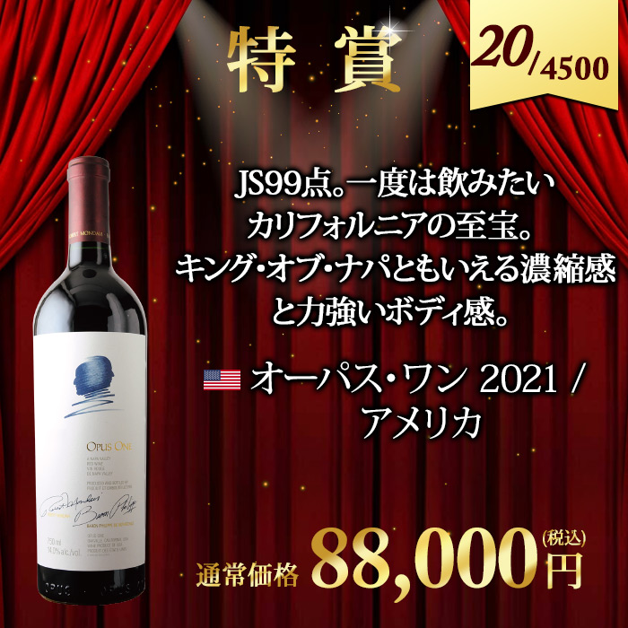 特賞はオーパス!史上最高の内容で贈る大人気ワインくじ
