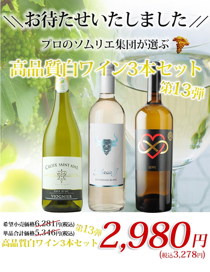 | 商品名 | 高品質白ワイン3本セット第15弾! |