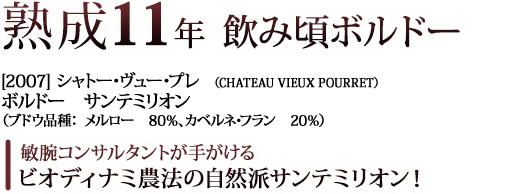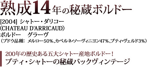 カベルネ種からの、アクセントのある香りや味わい、そしてほんのり樽香を感じる、 飲みごたえのある仕上がり。今のボルドーでは珍しく伝統的な4品種を絶妙にブレンドした配合でバランス感も絶妙です。
