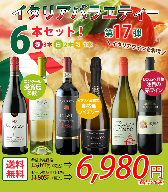 ●プレシーソ・ネロ・ダヴォラ/ワイン・ピープル ●キャンティ・リストレット・ディ・リリアーノ/マレンキーニ ●バルベーラ・ダスティ・DOCG/ウンベルト・フィオーレ ●ペモ・ペコリーノ/ワイン・ピープル ●ピノ・グリージョ・ポンテ・デル・ディアボロ/カンティーナ・ラウシェド ●ポローニ・スプマンテ・ブリュット/ワイン・ピープル |
