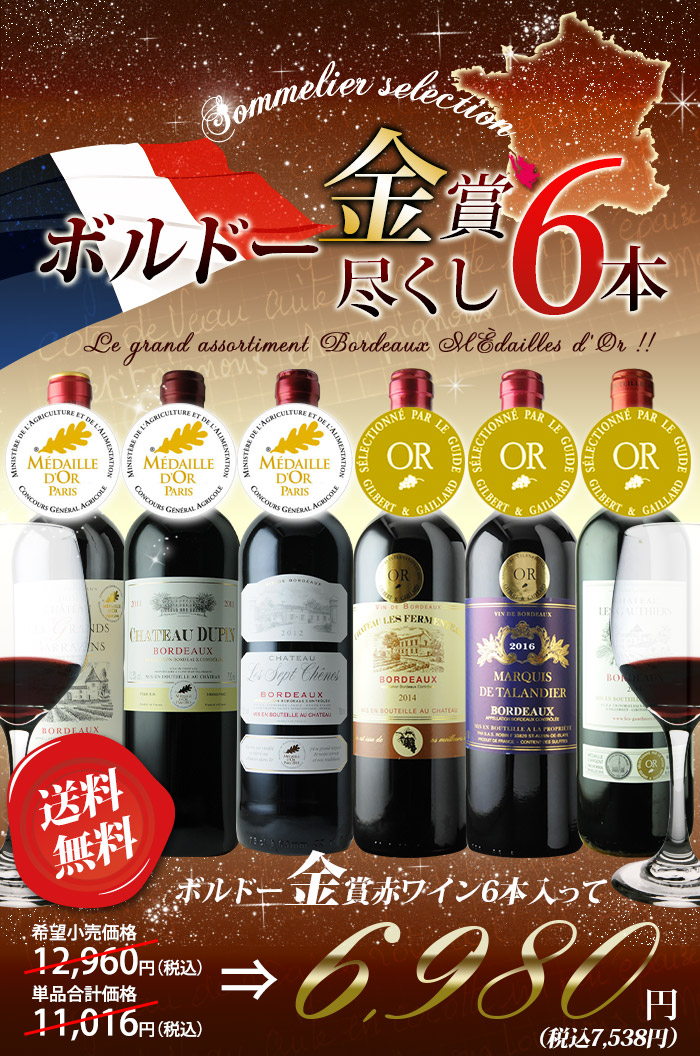 ワインショップソムリエ厳選 全部金賞ボルドーワイン6本セット