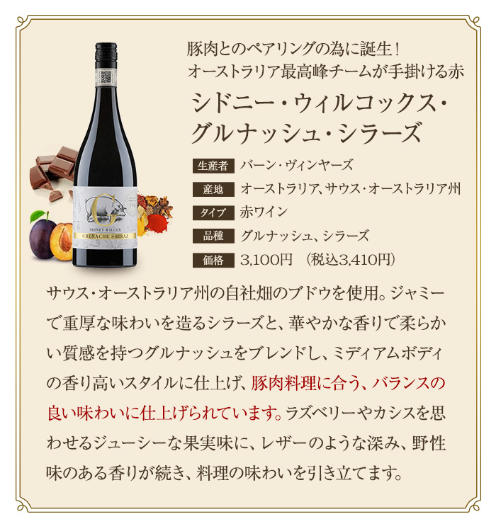 | ワイン名(原語) | シドニー・ウィルコックス・グルナッシュ・シラーズ |