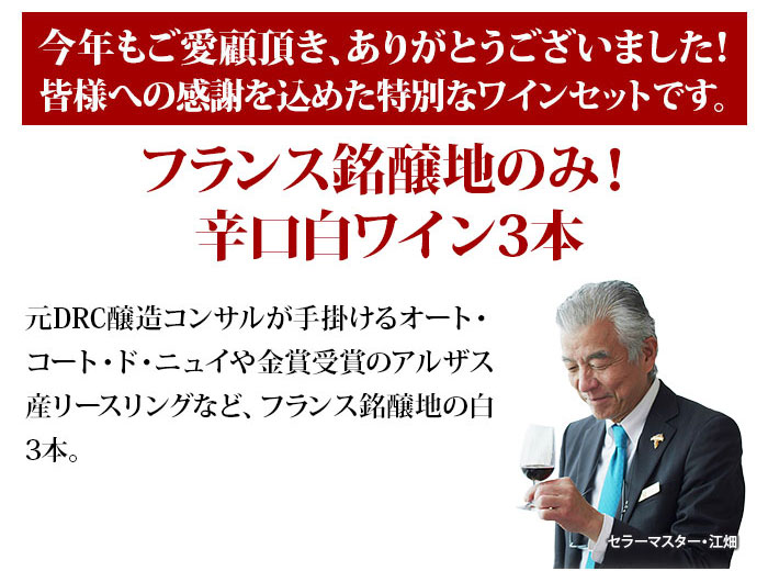| セットの説明 | 期間限定!フランス銘醸地のみ!辛口白ワイン3本 |