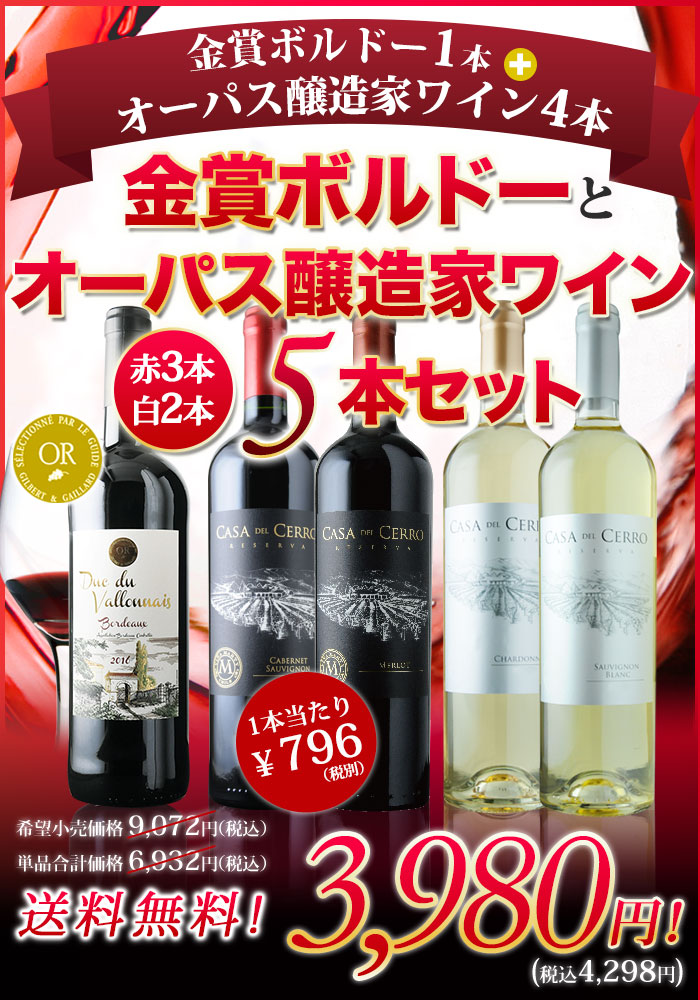 | 特徴 | 五大シャトー醸造家ワイン4種類飲み比べのコスパ高ワインセット |