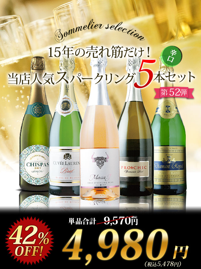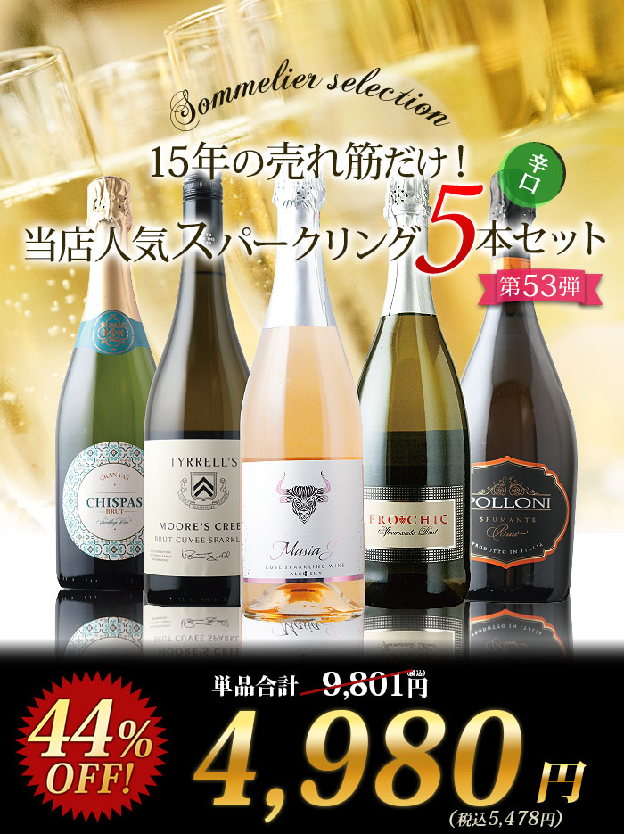 15年の売れ筋だけ!当店人気スパークリングワイン5本セット