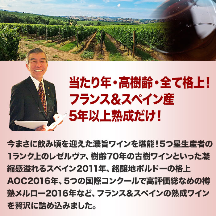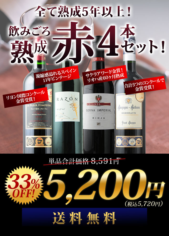 全て熟成5年以上!飲みごろ熟成赤ワイン4本