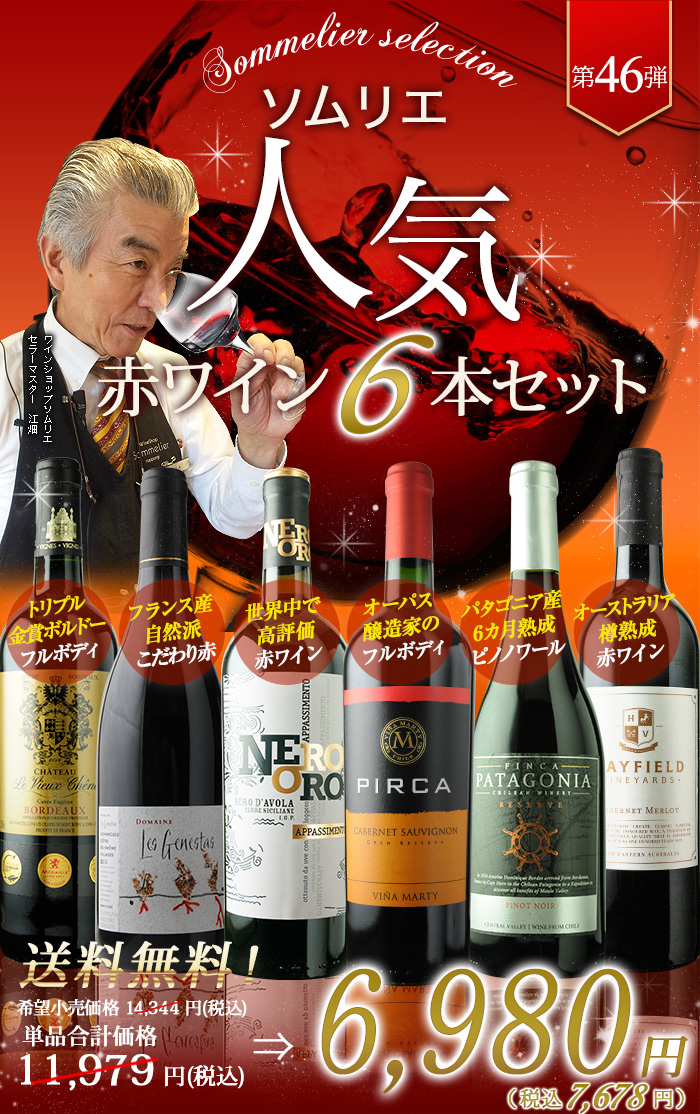 【送料無料!】ソムリエ人気赤ワイン6本セット
