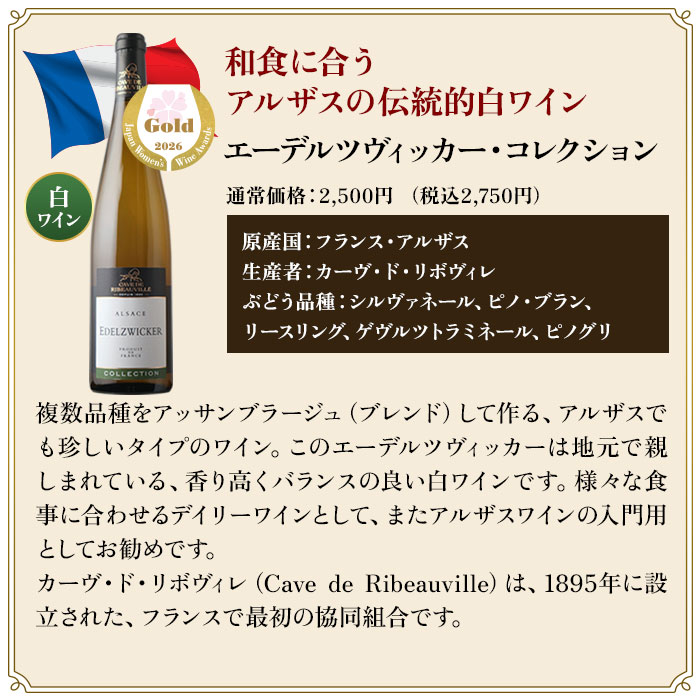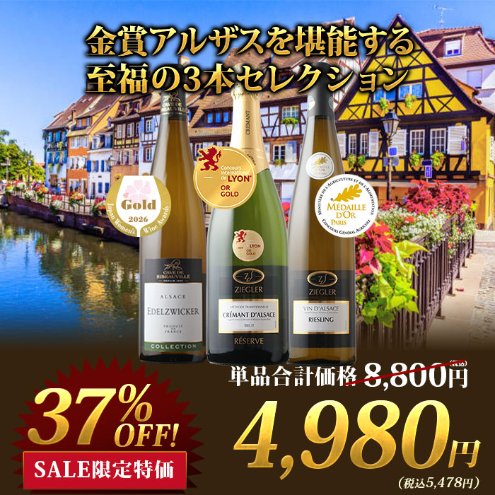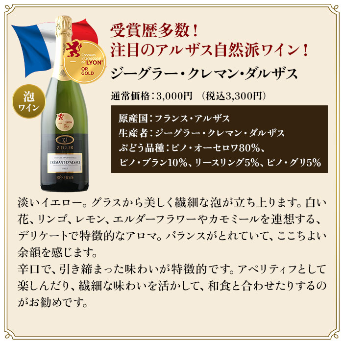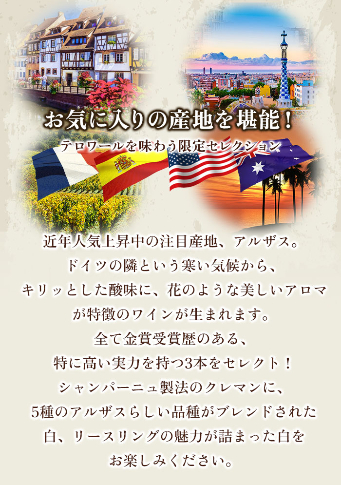 金賞アルザスを堪能する至福の3本セレクション(白2本・泡1本)