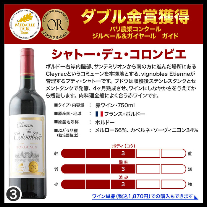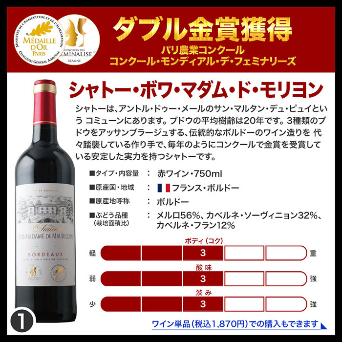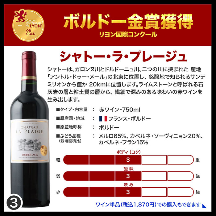 当店の金賞ボルドーワインセットの3つのポイント