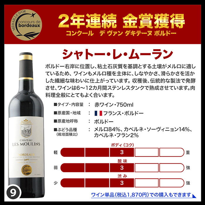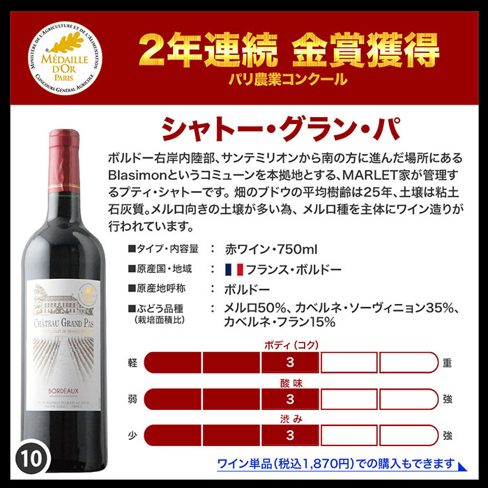 全部金賞ボルドー赤ワイン10本セット! TOP!