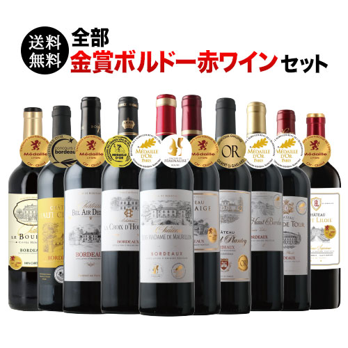 全部金賞ボルドー赤ワイン10本セット 送料無料 赤ワインセット「11/20更新」