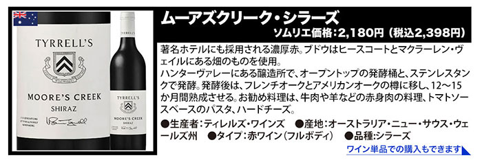 ●ピノ・ノワール・レゼルヴ・バレル・セレクション/フィンカ・パタゴニア ●ネロ・オロ・ネロ・ダヴォラ/ワイン・ピープル ●ぎんの雫・グット・ダルジャン・ピノ・ノワール/ヴィニャ・マーティ ●ミオパッソ・プリミティーヴォ/ワイン・ピープル ●ラソン/ボデガス・エスクデロ ●ル・ヴュー・パン・ミュグス ●ムーアズクリーク・シラーズ/ティレルズ・ワインズ ●ラブ・レッド/ヴィニャ・マーティ |