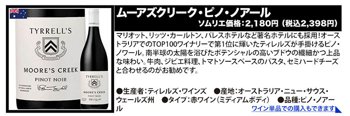 ●パチャ・レゼルヴァ・メルロ/ヴィニャ・マーティ ●キャンティ・リストレット・ディ・リリアーノ/マレンキーニ ●ドムニヌス・ル・グラン/ヴィニョーブル・ド・ロリアン ●ラ・ローズ・カルミン ●ラソン/ボデガス・エスクデロ ●クラシック・ルージュ/シャトー・リヴィエール・ル・オー ●ムーアズクリーク・ピノ・ノアール/ティレルズ・ワインズ ●ラブ・レッド/ヴィニャ・マーティ |