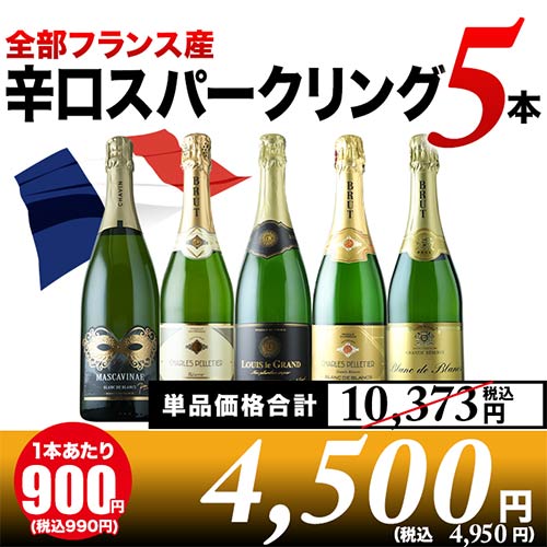 全部フランス産 辛口スパークリング5本セット 第36弾 スパークリングワインセット「10/20更新」