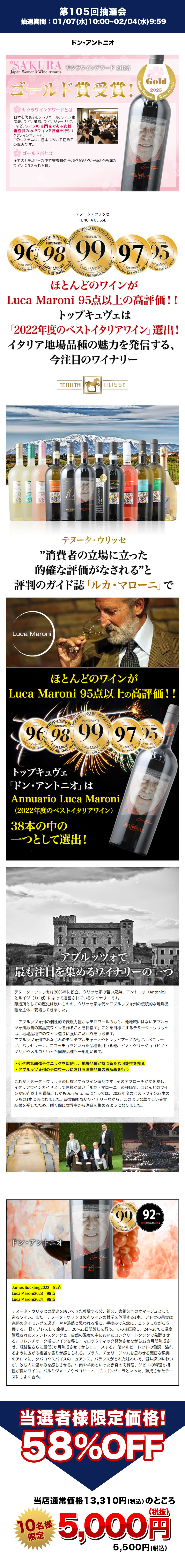 ※どなたでもご応募可能。抽選で10名の方に「ベストイタリアワインに選出された偉大な赤「ドン・アントニオ」を5,500円(税込)で買える権利」をプレゼントいたします。